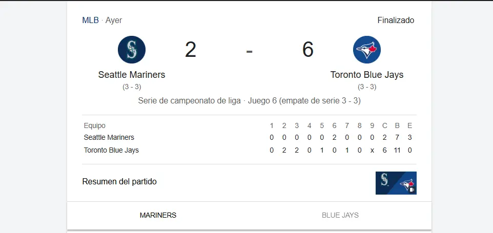 • Con esta victoria, los Blue Jays empatan la serie 3 – 3 y forzaron un Juego 7, que se jugará en Toronto.