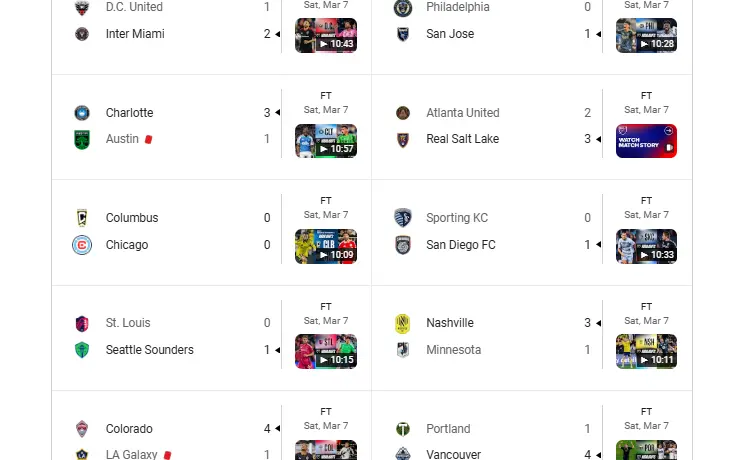 Resultados de fútbol de la MLS